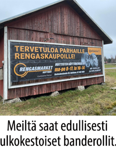 Banderollit tulostamme ja valmistamme omavalmisteena Mouhijärvellä.